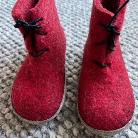 Deilige varme tøfler i tykk ull! Brukt en gang eller to her inne i huset, men de var dessverre for små.