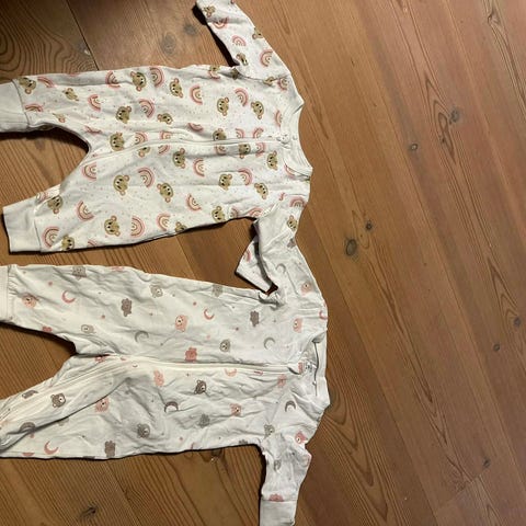 Hust and Claire pysj/drakt str 56, Joha 85% merinoull str 60, Hust and Calire ullpysj/drakt 50% str 56, Lillelam 100% merinoull pysj/drakt str 52, Newbie bomullsdress str 56, 2 Newbie bomullsjakker str 56 (marineblå og rosa), New Born bomullsjakke (hvit) str 56, 3 bomullspysj uten fot fra Cubus str 50/56, hvitt sett fra HM str 56, hvitt sett fra Cubus str 56, 4 kortermet bodyer Newbie str 56, 2 langermet body Newbie str 56, 4 bukser Newbie str 56, beige sett Lil’Atelier str 56, hvit langermet body Reflex str 56, kortermet body Lindex str 56 med solhatt 36-38, langermet body HM str 56, ullbody 50% Reflex str 56, brun pysj MarMar med fot str 56, 1 par knestrømper, 14 par sokker.
