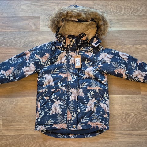 Newbie genser, beige/hvit med løver. Pent brukt, ingen skader. Str 98/104, 2-4 år