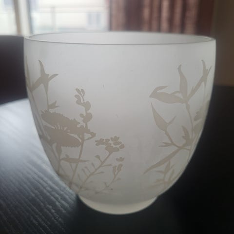Kan brukes som vase, lyslykt, godteri krukke eller noe annet lurt. Den er sylinderformet og ganske stor.