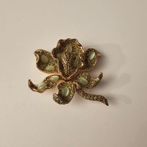 Orkidé brosje Thailand - vintage - se bilder for str og stand. Kommer i original eske. Selges 400kr + evt frakt 69kr postnord eller fiks ferdig.