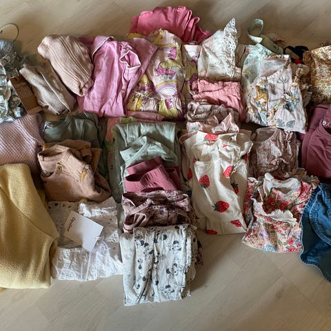 Klespakke, størrelse 86-92-98, designet for jenter.