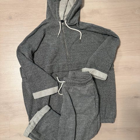 Selger et hvitt sett med bukse (str M) og half zip genser (str S) fra Gina Tricot 🤍 Behagelig og praktisk. Pent brukt, men muligens noe misfarging fra lagring på genseren. Synes ikke noe særlig 👀 Selges derfor billig!