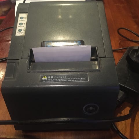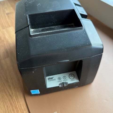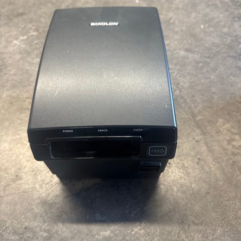 kvitteringsskriver i svart farge. Kompakt design egnet for utskrift av kvitteringer i detaljhandel og serveringssteder. Thermal printer / termalprinter. Kvitteringsprinter.
