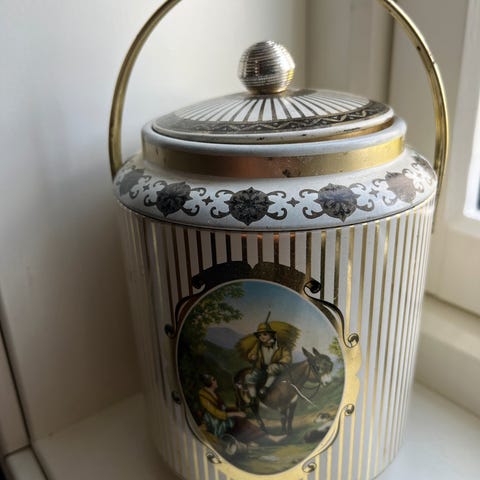 Fra Mölnlycke, merket med det og garn på sidene. Ca 40,2x30,5 cm, høyde 7,3. Alderen er en antagelse.
