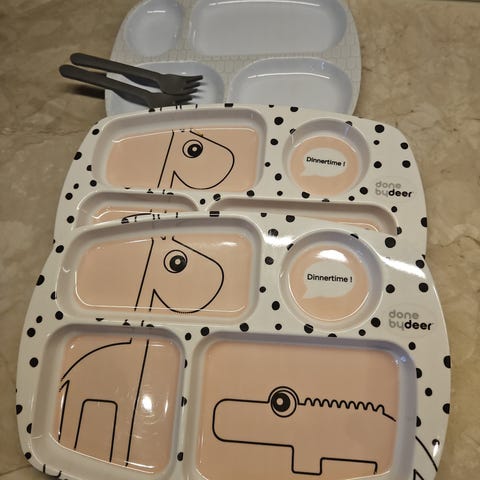 Et sett med frost, et med kaptein Sabeltann og et med peppa gris. Settene inneholder kopp, skål og tallerken.