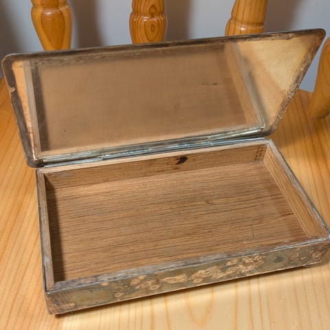 Normal aldersrelatert slitasje og patina, men fremstår hel og funksjonell. Ingen sprekker eller brudd.