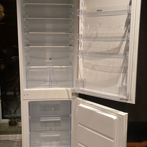 Whirlpool kombiskap i hvit farge. Kjøleskap med fryser under. Innvendig har den flere hyller og skuffer for organisering av matvarer.