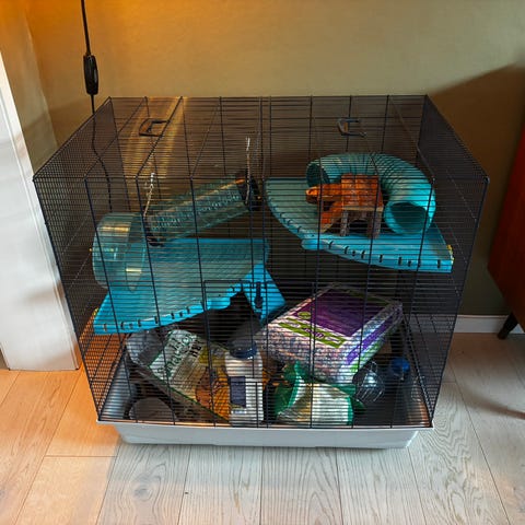 Stort gnagerbur med flere etasjer