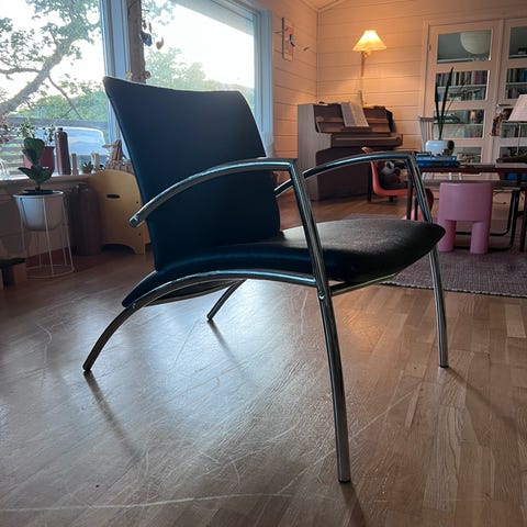 Nydelig lenestol med justerbar nakkestøtte. Svært lite brukt. Merket er danske KEBE og modellen er Ergo. Kjøpt ny hos premiumbutikken Berle i Bergen. Farge Brema blue. Nypris 18.815,-