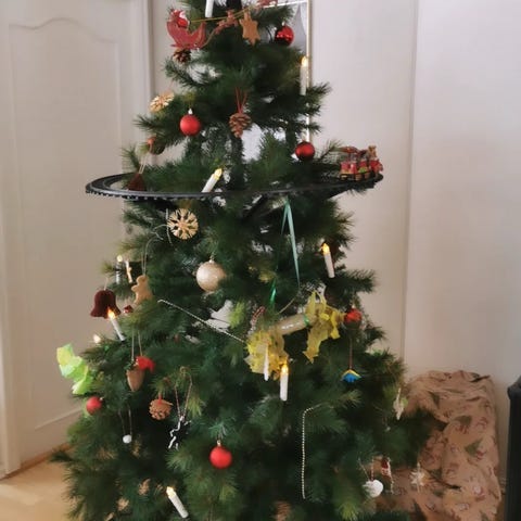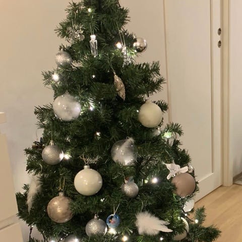 Tilhørende juletrefot medfølger. Ingen skader og fungere som det skal.