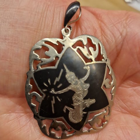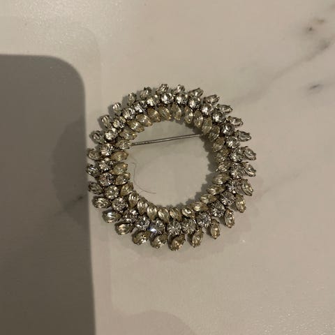 Nydelig Prestekrage-brosje, sølv og emalje. Selges for 500kr