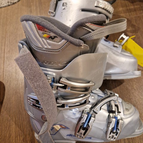 Begge skipara har stålkantar. Det eine paret er smørefrie, det andre smøreski. Fullt brukbare ski og sko.