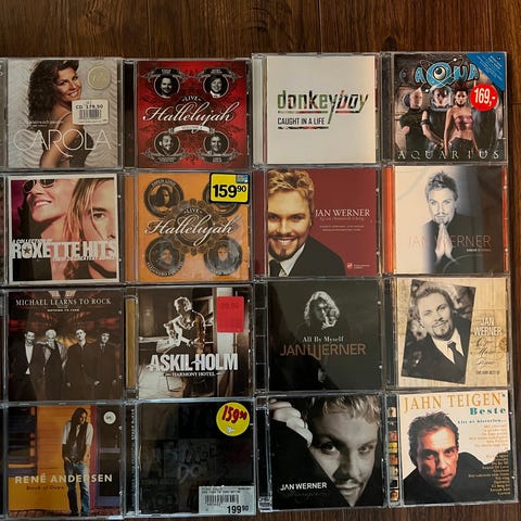 Samling av flere CD-plater i standard plastomslag. Varierende musikksjangere og artister. Egnet for musikklyttere som ønsker en større samling av fysiske musikkalbum.