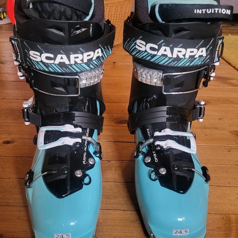 Selger et par veldig lite brukte Scarpa Maestrale topptursko, i str 26,5. Brukt et fåtall ganger. Har blokka de ut hos sportsbutikk, men er dessverre for trange for meg. Ingen slitasje annet enn på innfesting til binding i front (se bildet).