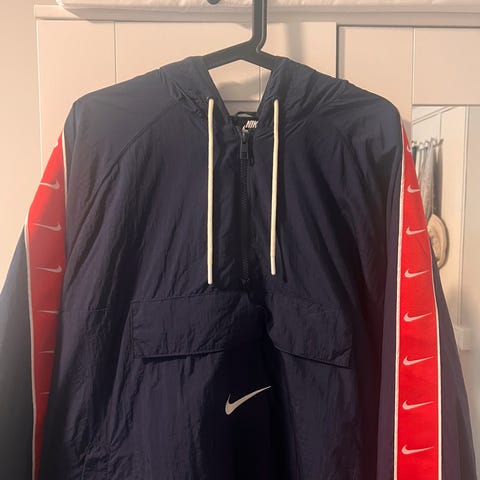 Nike jakke i størrelse L, laget av polyester. Jakken har en grønn farge med svarte detaljer og er designet for menn.