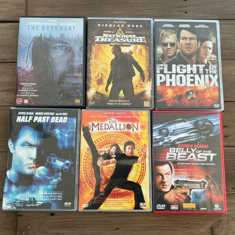 Samling av diverse DVD filmer med ulike action titler og sjangre. Inneholder flere filmer i standard DVD-format. Passer for filminteresserte som ønsker variasjon i sin filmsamling.