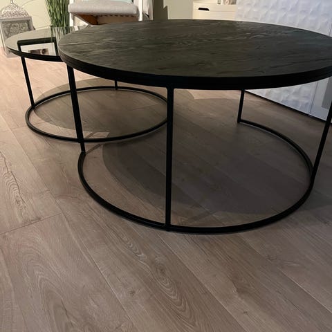 Lakkert eikefiner med heltre kant og understell. Kjøpt på bohus i 2020.