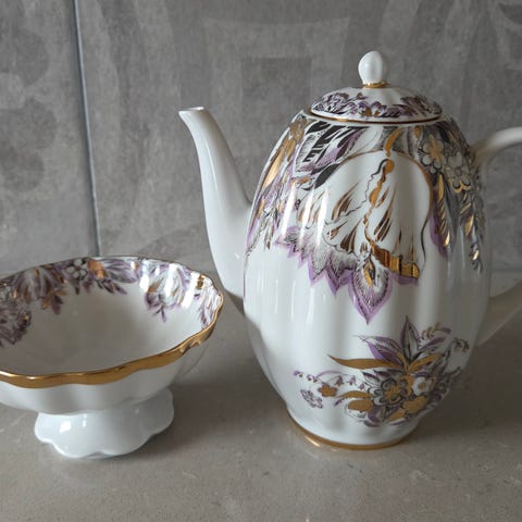 Pent og komplett servise i mønsteret Golden Garden fra Lomonosov Porcelain Factory (Made in Russia).