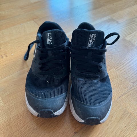 Nike Star Runner joggesko til barn i størrelse 30. Pent brukt, med normal bruksslitasje. Ingen hull eller skader. Praktisk borrelås kombinert med lisser, lett å ta av og på. Komfortable og fine til både skole og fritid.