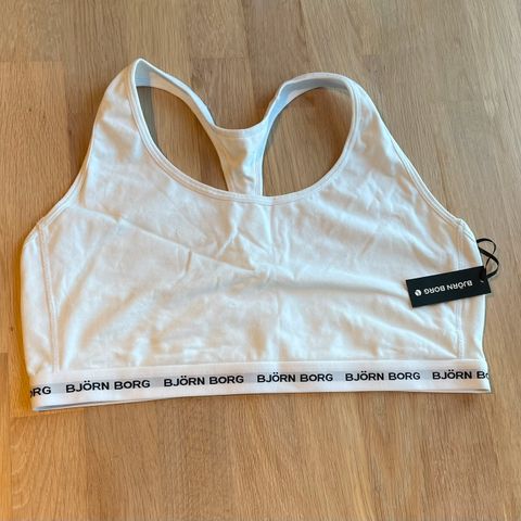 Björn Borg Andre topper i grå farge, størrelse M. Laget av mykt materiale med elastisk bånd under brystet med Björn Borg-logo. Pent brukt