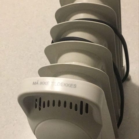 Point Oljeovn med 7 ribber i hvit farge. Elektrisk oppvarmingsenhet designet for å gi varme i rom. Utstyrt med termostat og justerbare innstillinger for temperaturkontroll.