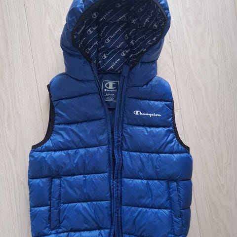 Moncler barnevest i størrelse 152 for gutt, laget av polyester i svart farge. Vesten har glidelås og er designet for å gi varme og komfort ved kjøligere vær.