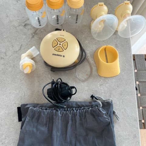 Medela Swing Flex elektrisk brystpumpe til dobbelpumping. Komplett bortsett fra én flaske som kan kjøpes separat på apotek el. Designet for enkel pumping og komfort under bruk. Lite brukt til ett barn, masse bruk igjen!
