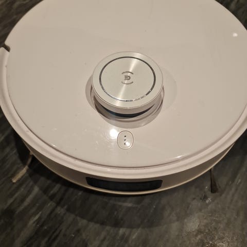 Ecovacs Deebot T10+ robotstøvsuger med selvutløsningsstasjon. Enheten har automatisk tømming av støvbeholderen og er designet for effektiv rengjøring av gulvflater. Lite brukt.