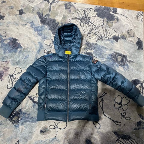 Moncler barnejakke i størrelse 152 for gutt. Jakken er blå og er limited edition. Den har glidelås og hette, og er designet for barn.
