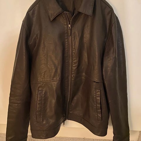 Selger en fin skinnjakke da den ikke lenger blir brukt. Tøff vintage look, og minner om en bomberjakke