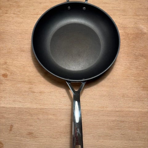 Le Creuset stekepanne med non-stick belegg og rustfritt stål bunn, 28 cm. Egnet for ulike varmekilder, inkludert induksjon. Har et ergonomisk håndtak i metall og plast for bedre grep.