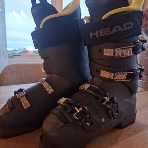 Pent brukte Salomon slalomstøvler/alpinstøvler i str 25.0 eller 39 2/3. Sorte med sølvfargede spenner. Damemodell. Disse passer om du normalt bruker skostørrelse 38.