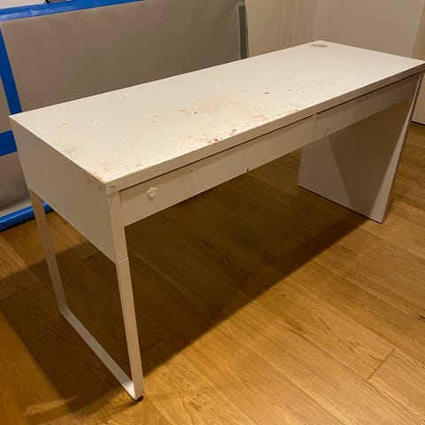 God stand med noen riper i bordplaten og noen merker på kantene (se bilder). Ripene i bordplaten er nesten ikke synlige.