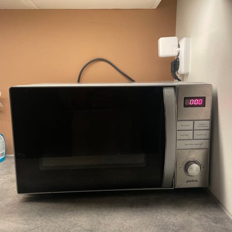 Mikrobølgeovnen er i god stand og fungerer fint. På undersiden mangler den en liten fot, men det kan enkelt fikses. Må hentes.
