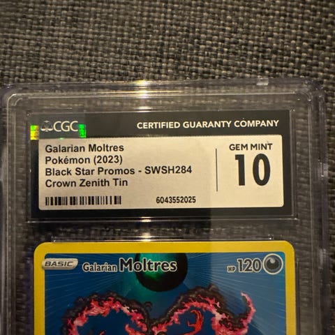 Selger PSA-gradert Galarian Moltres Pokémon-kort fra Crown Zenith-serien.