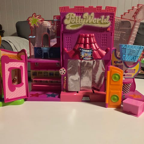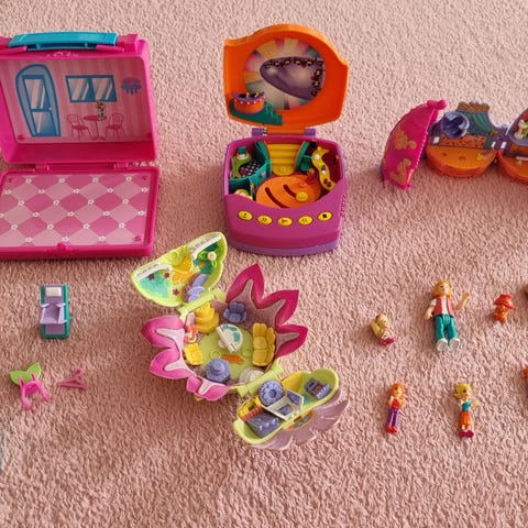 Polly Pocket dukker, diverse klær og tilbehør og noe møbler/ greier og ting. Det hører også med en hest. Jeg husker dessverre ikke om dette er fra Polly Pocket, men nå har jeg hatt en liten opprydning.