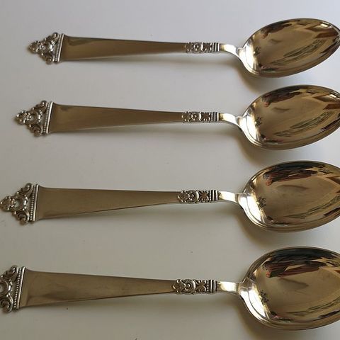 6 Odel Stor spiseskje i 830 sølv selges for kr 1200 pr stk, eller kr 6500 samlet. Veiledende utsalgspris nå er over 3000 kr pr stk. Vekt pr skje er 38 gram. Vanskelig å måle lengde på en skje, men jeg kom til ca 20,5 cm.