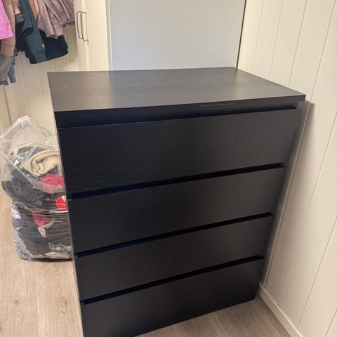 Kommode kjøpt på IKEA. Den har fått nye rosa glassknotter. Noen få merker. Ellers i fin stand.