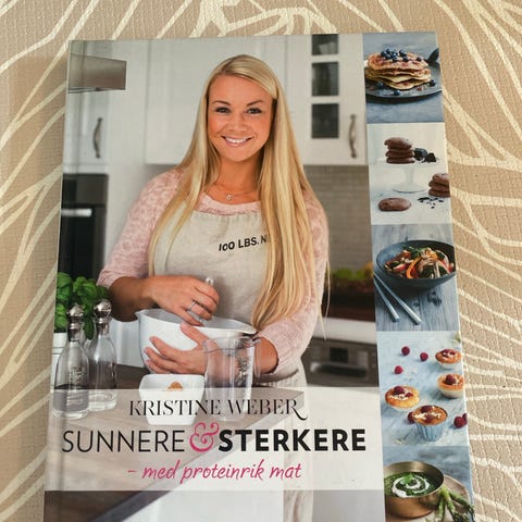 Kristine Weber Sunnere Sterkere kokebok med fokus på mat rik på proteiner. Boken inneholder oppskrifter og ernæringsinformasjon for sunnere og sterkere livsstil.