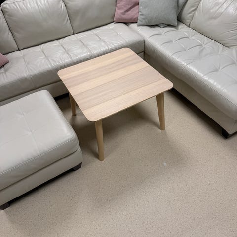 Hvit skinnsofa, stor, godt brukt. Deles i tre mindre deler. Trengs 2 til bæring.