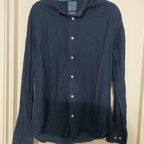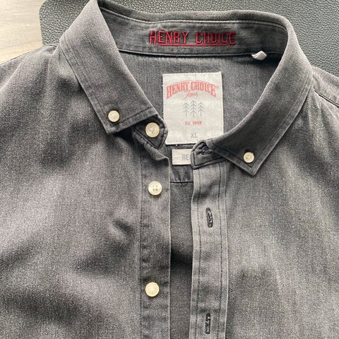 Pent brukt denimskjorte fra Henry Choice i mørk blå farge. Klassisk modell som funker like godt til hverdags som til litt penere bruk.