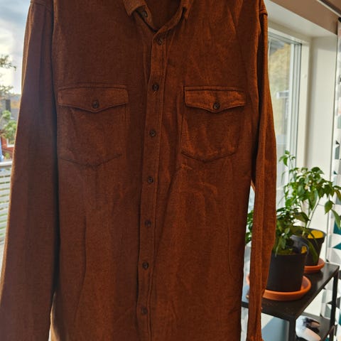 Skjorten er i størrelse XL, men er merket fitted og sitter derfor noe smalere enn vanlig XL.