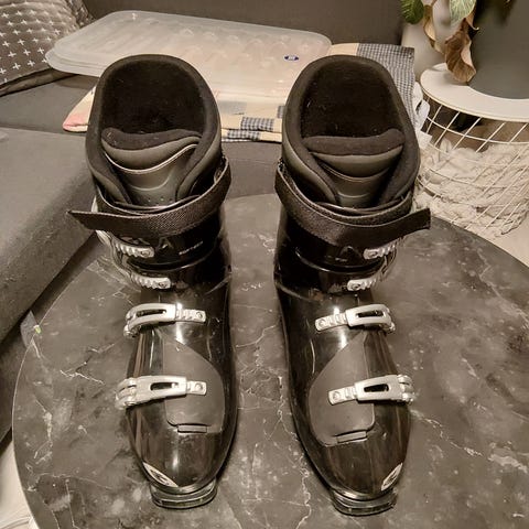 Head alpinstøvler i fargene gul, hvit og svart selged. Størrelse 230-235, tilsvarende ca 36-37.