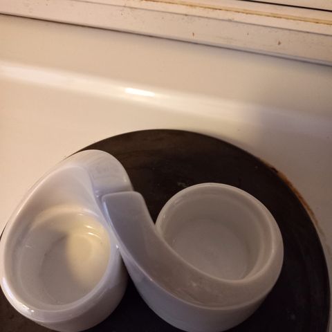 Selger et lite brukt telyholder med glassbolle under til dekorasjon.