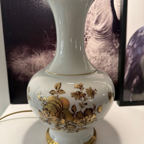 bordlampe porselenslampe vintage interiør belysning retro klassisk blomstermønster messing dekorasjon stuebelysning bordlampeporselen vaselampe gammeldags kvalitetshåndverk 70-talls 80-talls 70s 80s 90s bavaria Germany lampe cottage core Hollywood regency eldre gammel