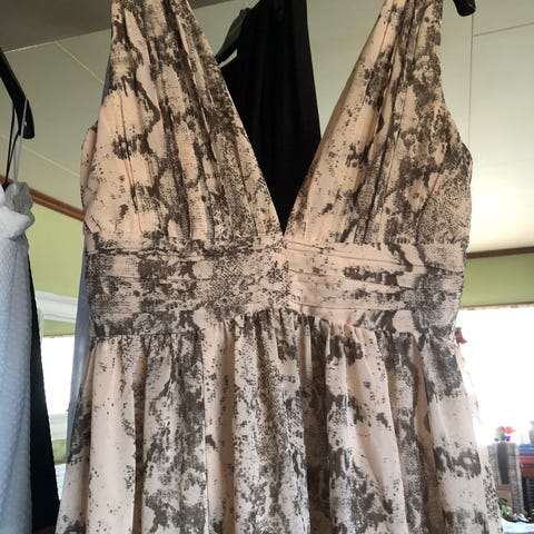 festkjole i størrelse M, laget av polyester. Kjolen har brun farge og er designet for kvinner.