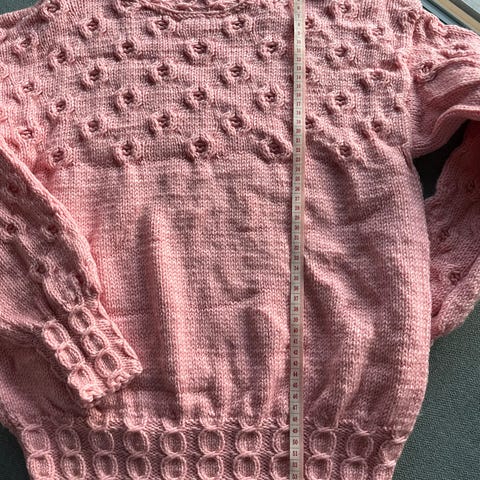 Hjemmelaget strikket genser med metallico fine tråd (se bilde for meir informasjon om garn), den er over size.