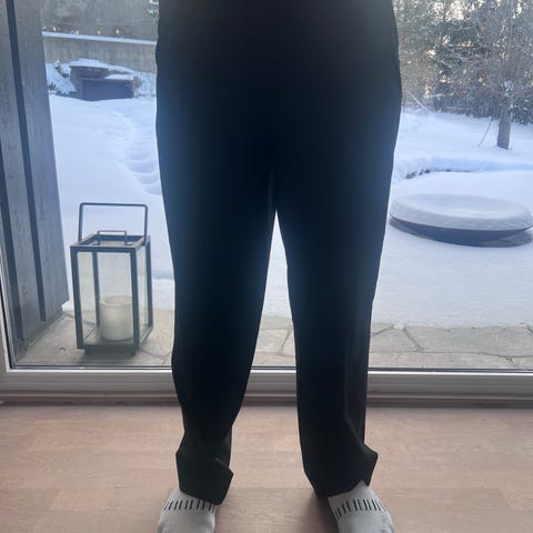 Helt ny, aldri brukt. Litt kort i beina og videre rundt livet.