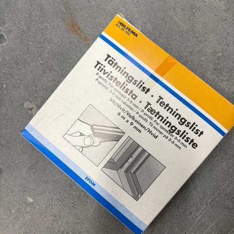 Selger en tetningslist til dør for støyreduksjon og for å minske varmetap og trekk. Bestilte ved en feil litt for mange. Nypris per stk er 292kr. Selges for 80kr per rull, eller 500kr for alle. Er 9 ruller.